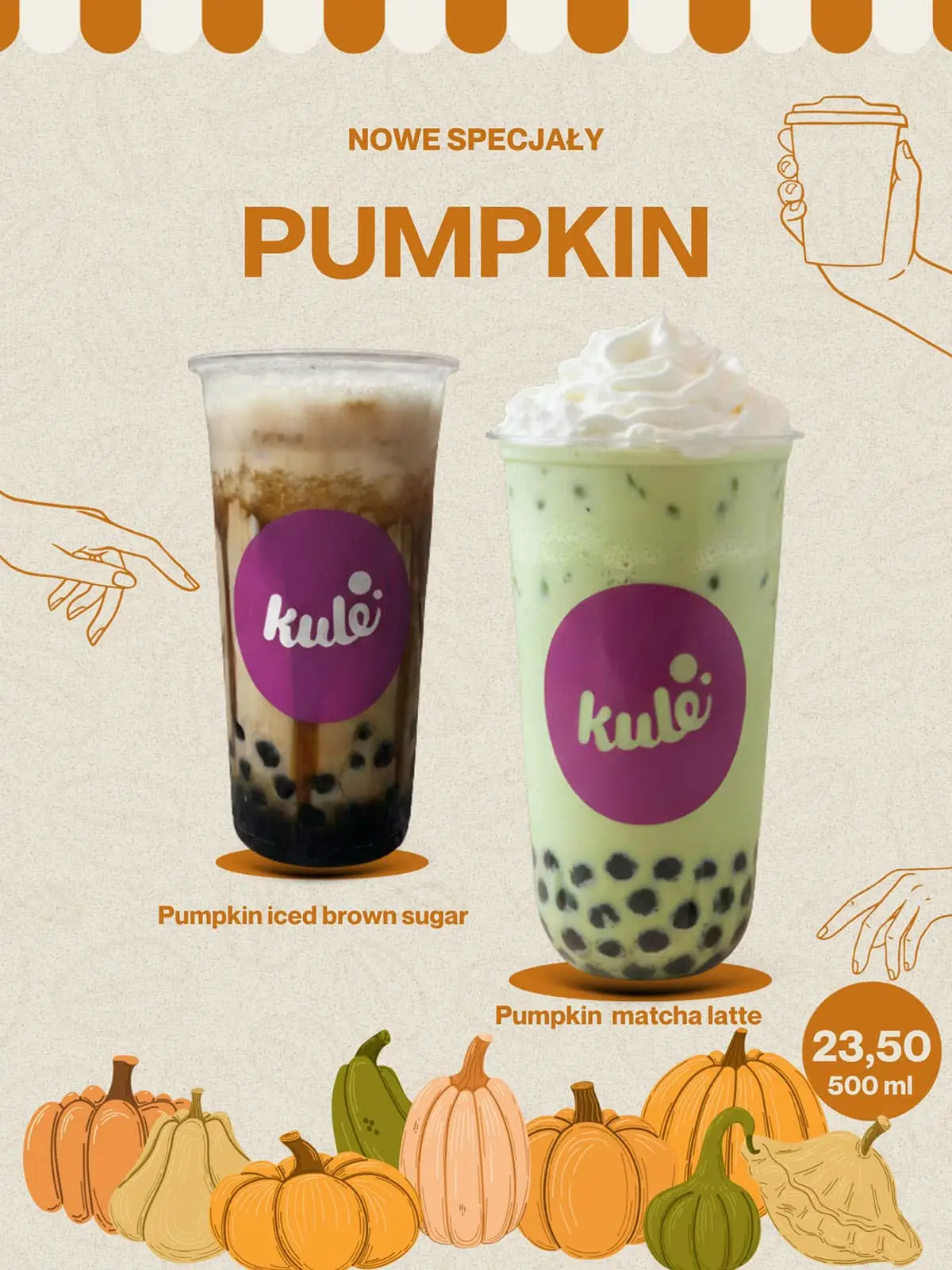 W KULACH właśnie pojawiły się nasze jesienne pumpkinowe nowości, które już zdążyły skraść serca miłośników jesiennego klimatu: Pumpkin Matcha Latte oraz Pumpkin Iced Brown Sugar!
