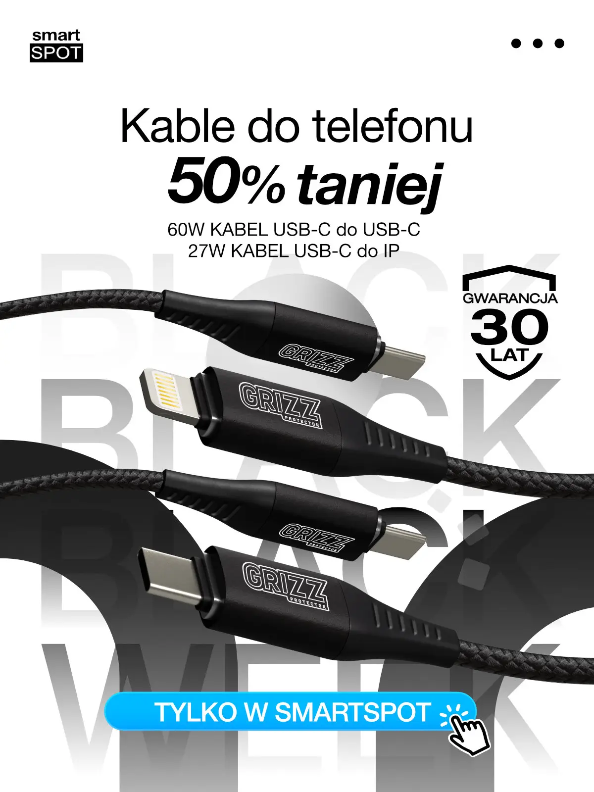Trwają Black Weeks w smartSPOT. Tylko do 5.12 kupisz wytrzymały kabel do telefonu aż 50% taniej.