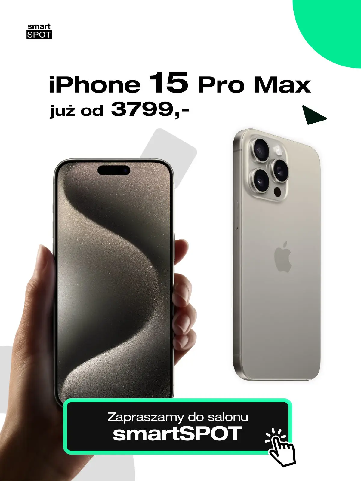 Wpadnij do salonu smartSPOT i wybierz iPhone dla siebie. W ofercie między innymi iPhone 15 Pro Max 256GB już od 3799 zł!