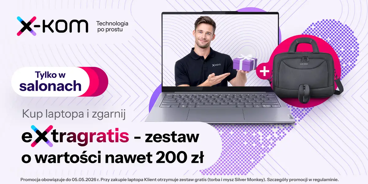 Pamiętaj, promocja obowiązuje wyłącznie w salonie stacjonarnym i trwa do 5 maja 2026 r. lub do wyczerpania puli produktów promocyjnych. Szczegóły w regulaminie dostępnym w salonie lub na x-kom.pl