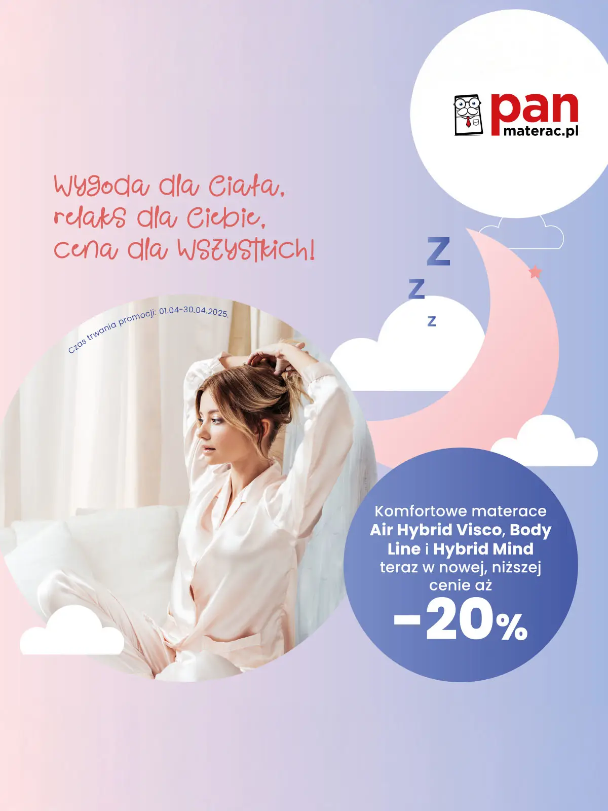 Promocja w dniach 01.04 - 30.04.2025 r. Więcej szczegółów w salonach Pan Materac i na www.panmaterac.pl